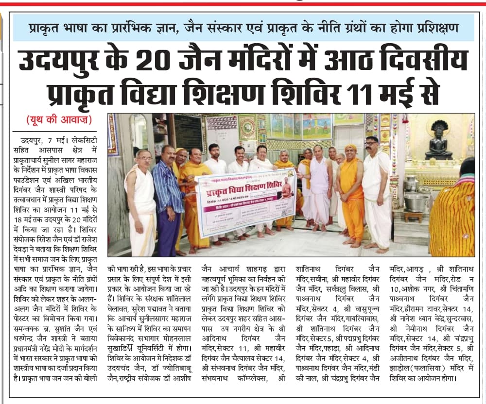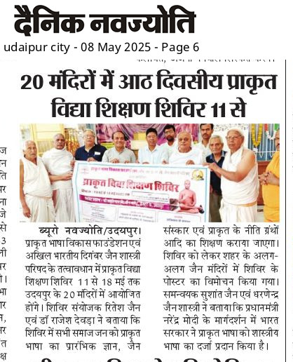 उदयपुर के 20 जैन मंदिरों में जैन संस्कार एवं प्राकृत के नीति ग्रंथों का होगा प्रशिक्षण