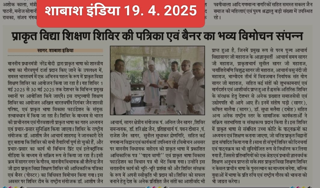 जैन धर्म के प्राचीन ग्रंथ जो लिखे गए हैं वह प्राकृत भाषा में ही है ,णमोकार मंत्र प्राकृत भाषा में है इससे यह सिद्ध होता है कि जैन धर्म की मातृभाषा प्राकृत भाषा है । इसका प्रारंभिक ज्ञान हर बच्चे बच्चे को होना आवश्यक है ।श्री आशीष जी द्वारा इस दूरगामी सोच का हम हृदय से स्वागत करते हैं । इस शिविर से बच्चों को प्राकृत भाषा का सीखने को मिली है।