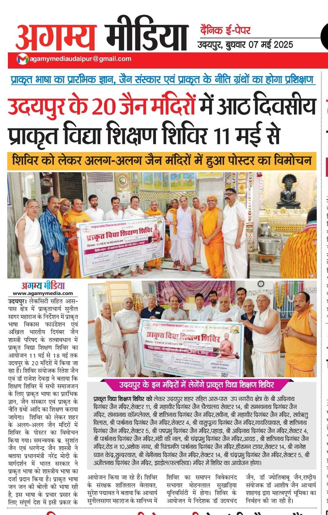 प्राकृत भाषा शिक्षण शिविर अपने आप में अनूठा शिविर है। प्राकृत भाषा का अधिक प्रचार प्रसार के लिए यूं ट्यूब पर भी कन्टेंट उपलब्ध करवाना चाहिए।